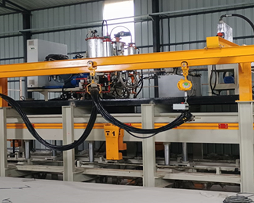 The double tucker, double belt bed assembly produces the panel output of maximum 48 m/hr. Both the wall and composite panels are produced.